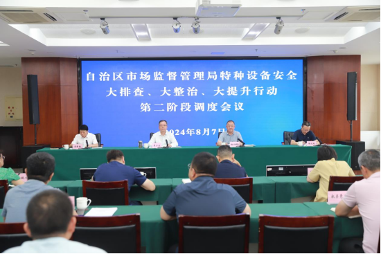 为贯彻落实党的二十届三中全会精神,深入推进全国特种设备安全监察工作座谈会工作要求落实见效,继续深入贯彻自治区城镇燃气安全及旅游安全工作部署,跟进掌握全区各级市场监管部门特种设备安全大排查、大整治、大提升行动开展情况和交叉互查进度,分析研判形势,锚定责任分工,拧紧工作链条,切实增强做好特种设备安全监管工作的责任感和紧迫感,8月7日,自治区市场监督管理局召开特种设备安全大排查、大整治、大提升行动第二阶段调度会议。自治区市场监督管理局党组成员、副局长翟少勇出席会议并讲话,二级巡视员阿扎提·皮热德吾斯出席会议,二级巡视员李德新主持会议。